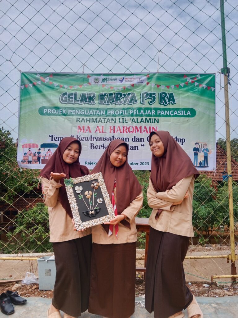 Hari Jum’at, Sabtu dan Senin 8 – 11 Desember 2023 di MA Al Haromain dilaksanakan Gelar Karya Siswa hasil Projek Penguatan Profil Pelajar Pancasila Rahmatal Lil ‘Alamin ( P5RA) sbg Implementasi Kurikulum Merdeka di Madrasah dengan Tema Kewirausahaan dan Gaya Hidup Berkelanjutan.